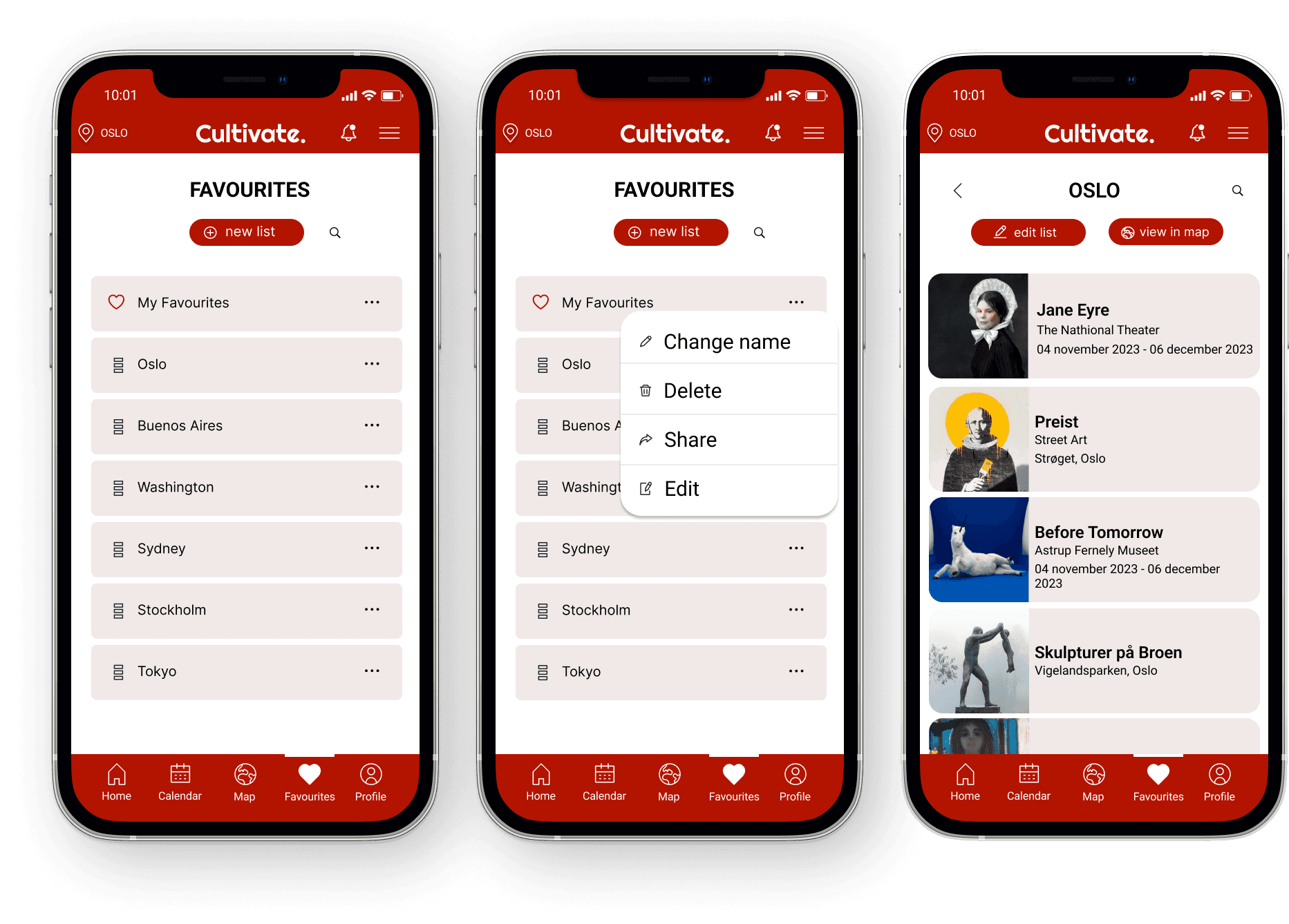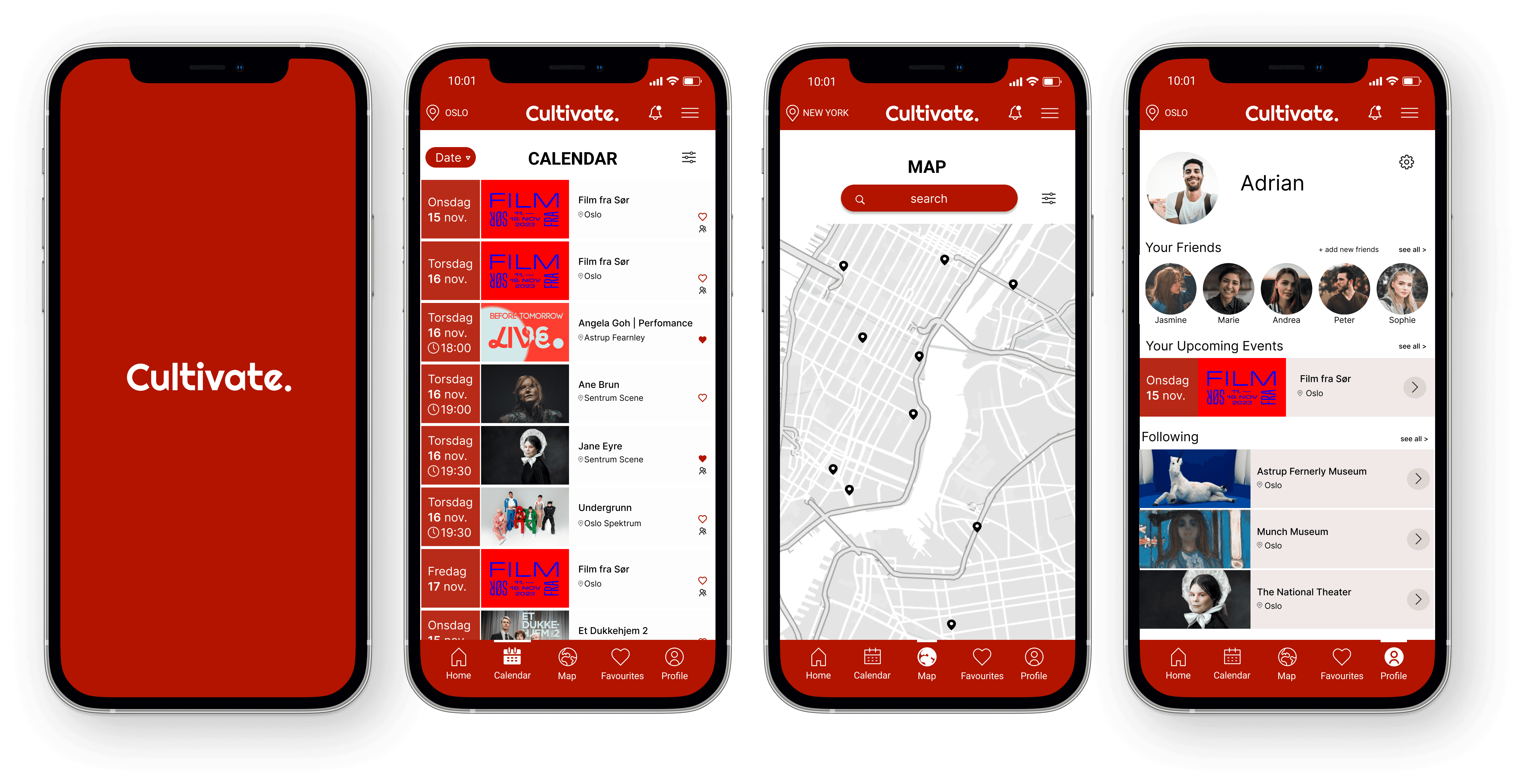 I dette prosjektet utviklet vi Cultivate – en konseptuell app som gjør det enklere å oppdage og organisere kulturelle opplevelser, både lokalt og på reise. Utgangspunktet var en åpen oppgave der vi kunne utforske egne interesser og behov. Vi ønsket å samle informasjon om museer, konserter, gallerier og street art på ett sted, i en løsning som både inspirerer og er enkel å bruke.